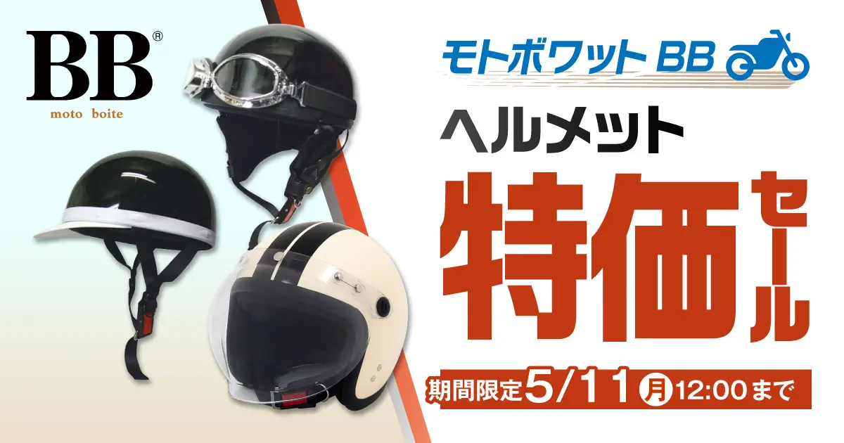 モトボワットBBヘルメット特価セール 5/11(月)正午12:00まで