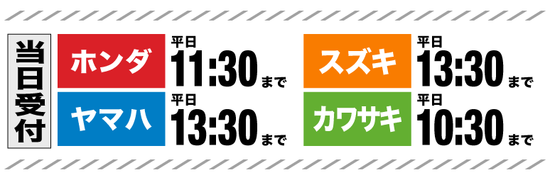 ※YAMAHA:休日明けは11:30までの当日受付となりますのでご注意ください。