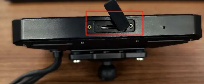 1. 本体の電源を切り、ドライバーを使用してSDカードスロットを開け、更新用SDカードを入れます。