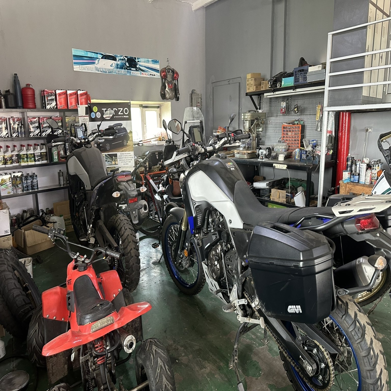 その後、ラリー時代に知り合ったモンゴル人の通訳と結婚し、モンゴルで起業。味戸さんのバイクショップは、モンゴルで唯一の日本人メカニックによる店として知られています。また、モンゴル日本人会の役員として、日本人ビジネスの発展にも貢献しています。日本人会のパーティーはこちらの庭で開催されることもあり、現在約200人の会員がいます。
