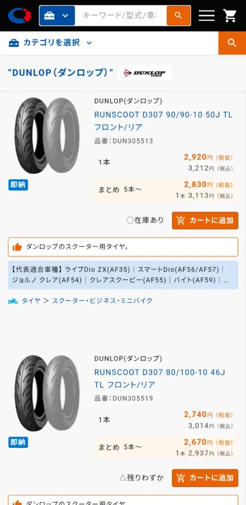 タイヤやオイル等の消耗品を自ら整備・交換する方にとって、適合商品のみを絞り込める検索機能は非常に便利です 。確実に装着できる部品を即座に見つけられるため、手間を省いてタイパ(タイムパフォーマンス)を最大化できます。