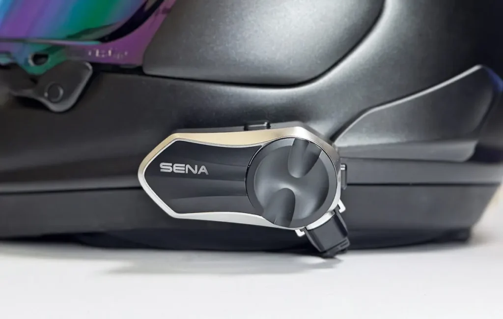 SENA ならではの安定したメッシュネットワークにより、複数人でのツーリング時も音声が途切れにくく、途中参加・離脱にも柔軟に対応する。操作UI はシンプルで直感的なので、インカム初心者でも迷わず扱えるのが魅力だ。