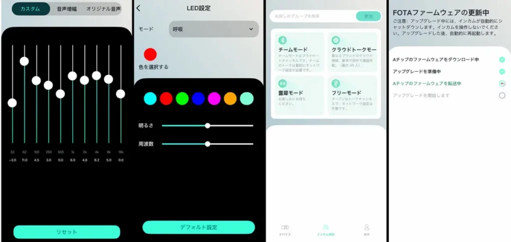 また、3つの接続モードをアプリ上で設定可能、ファームウェアのアップデートもアプリ内でできる。