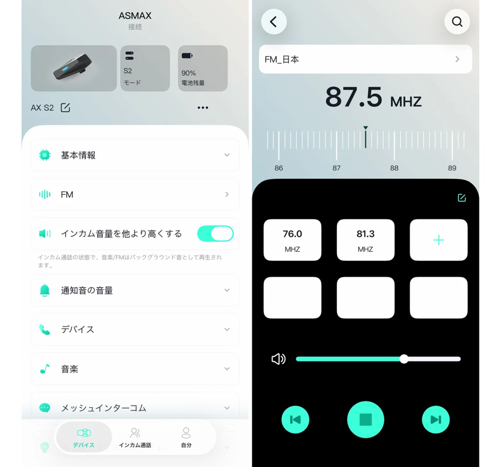さらに、S2ではFMラジオ搭載による「ラジオを聞きながらインカム通話」も可能です。