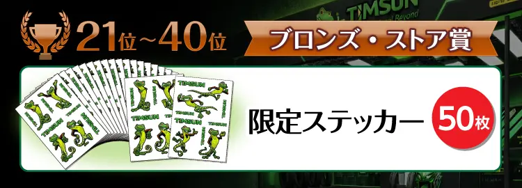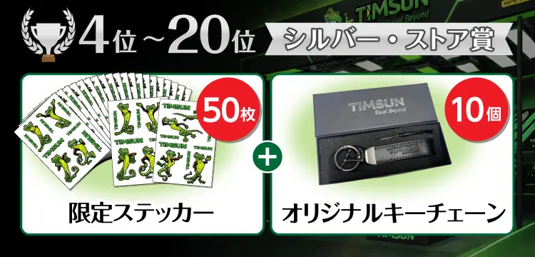 上位40店様へTIMSUNオリジナルグッズを進呈いたします。