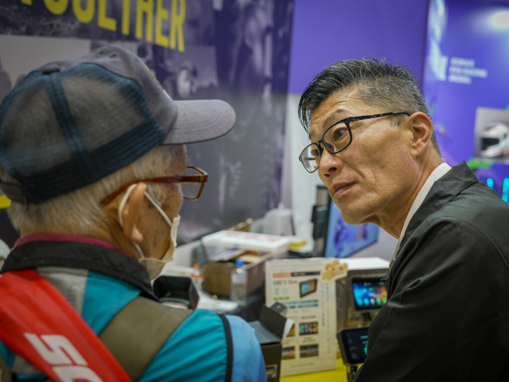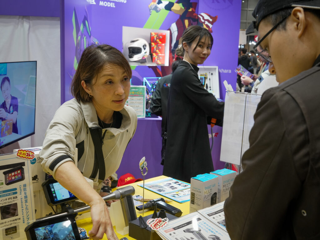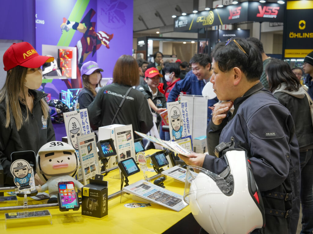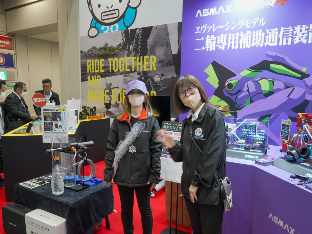 次世代インカム「ASMAX」や、スマートライドモニター「SRD5」、さらにエアダスターや高圧洗浄機などの実機デモンストレーションを実施。特にSRD5は「すべて揃ってこの価格は驚き!」と大反響で、背面取り付けの仕様などを熱心に確認される方が後を絶ちませんでした。